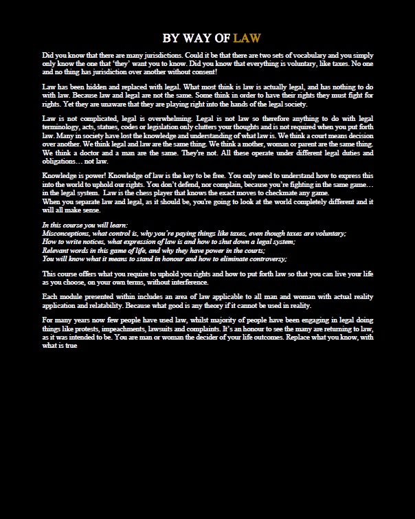 For many years now few people have used law, whilst majority of people have been engaging in legal doing things like protests, impeachments, lawsuits and complaints. It’s an honour to see the many are returning to law, as it was intended to be. You are man or woman the decider of your life outcomes. Replace what you know, with what is true.